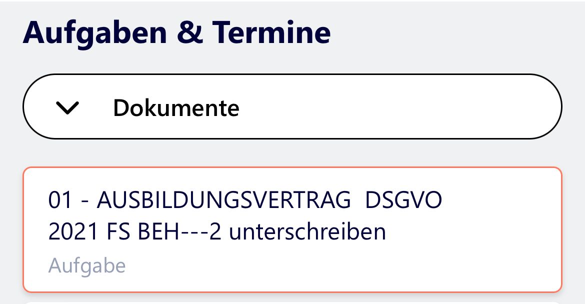 Unter "Dokumente" findet ihr den noch zu unterschreibenden Ausbildungsvertrag.